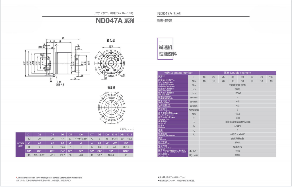 ND047A系列超精密背隙行星减速机系列(P0): ND047A系列精密背隙行星减速器系列(P1): ND047A系列标准背隙行星减速机系列(P2):