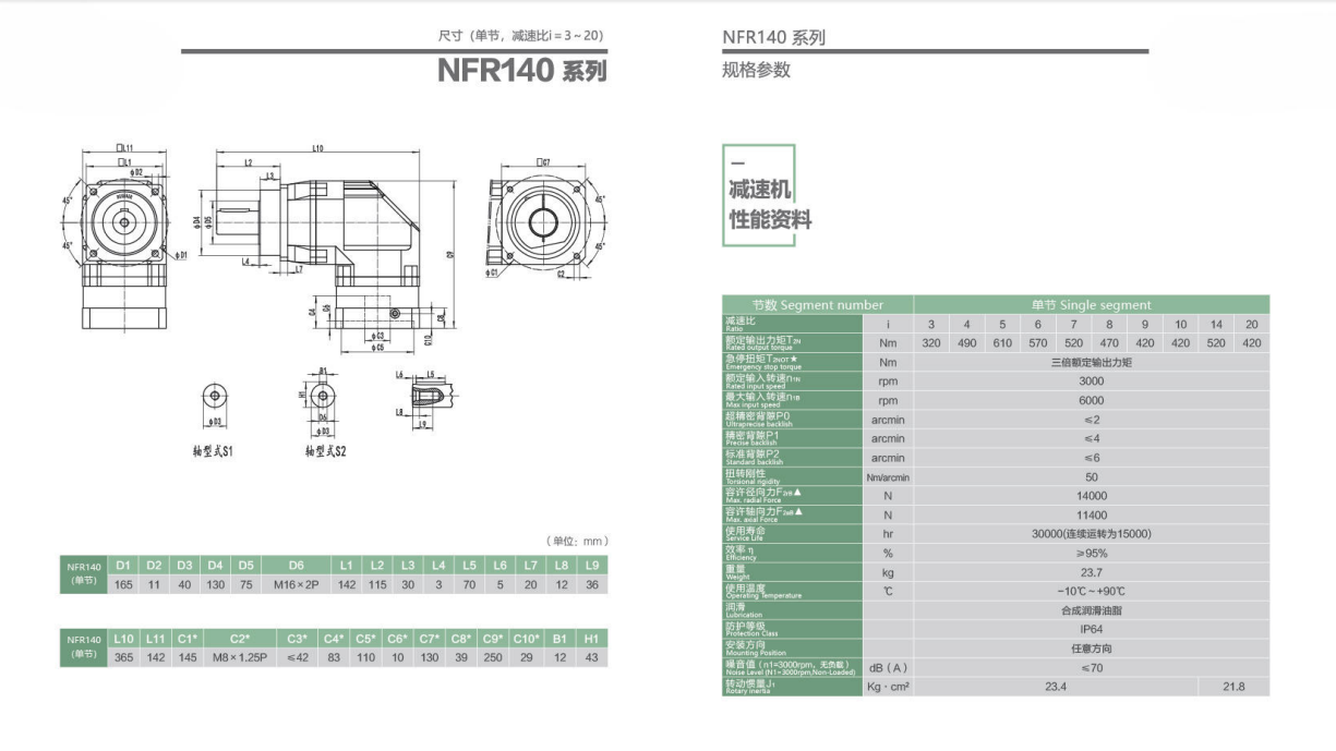 NFR140系列超精密背隙行星减速机系列(P0): NFR140系列精密背隙行星减速器系列(P1): NFR140系列标准背隙行星减速机系列(P2):