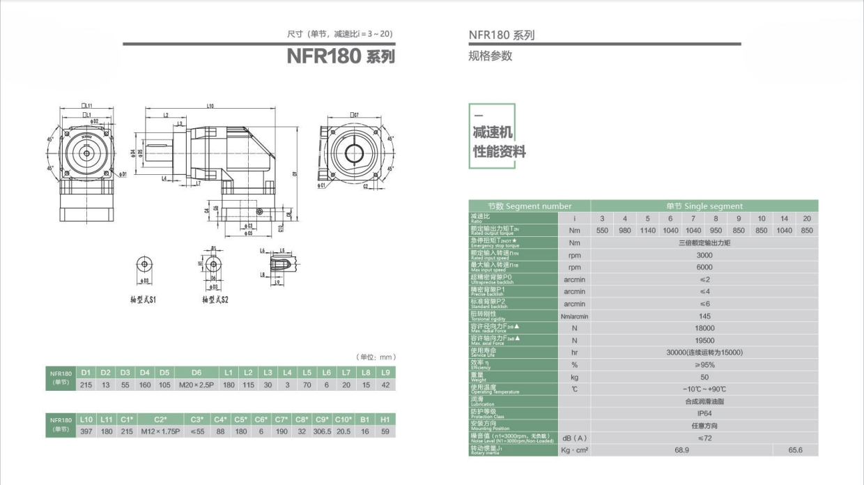 NFR180系列超精密背隙行星减速机系列(P0): NFR180系列精密背隙行星减速器系列(P1): NFR180系列标准背隙行星减速机系列(P2):