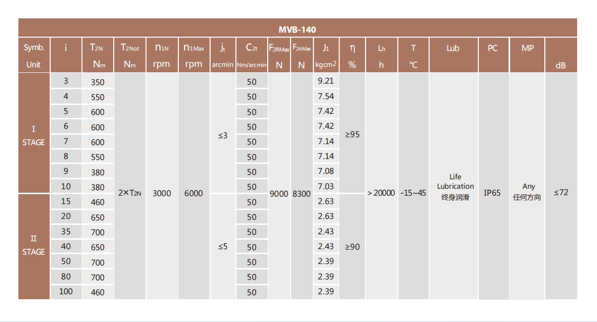 MVB-140-L1系列超精密背隙行星减速机系列(P0): MVB-140-L1系列精密背隙行星减速器系列(P1): MVB-140-L1系列标准背隙行星减速机系列(P2):