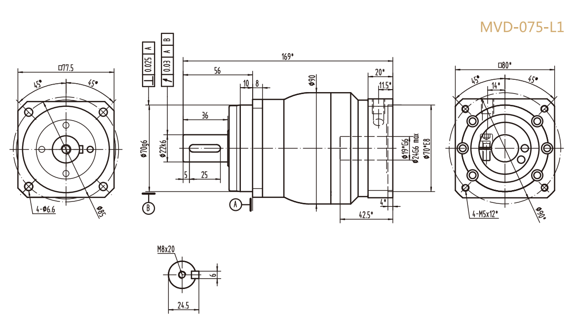 MVD-075-L1系列精密行星减速器型号尺寸与图纸