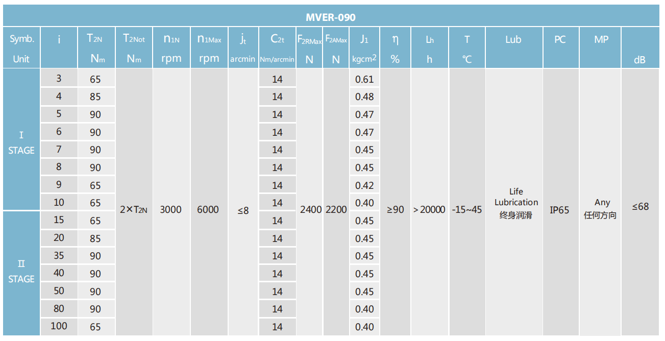MVER-090-L1系列超精密背隙行星减速机系列(P0): MVER-090-L1系列精密背隙行星减速器系列(P1): MVER-090-L1系列标准背隙行星减速机系列(P2):