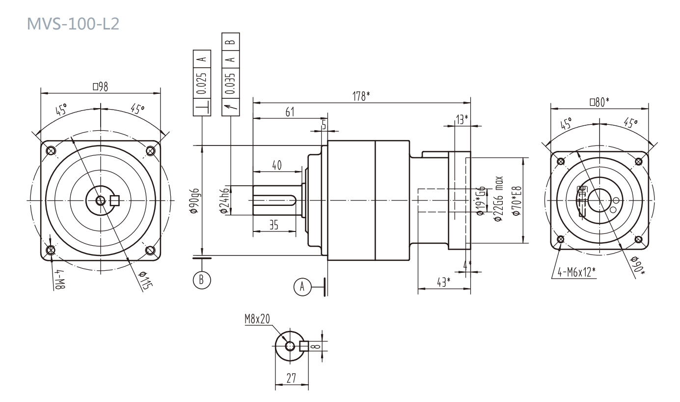MVS-100-L2系列精密行星减速器型号尺寸与图纸
