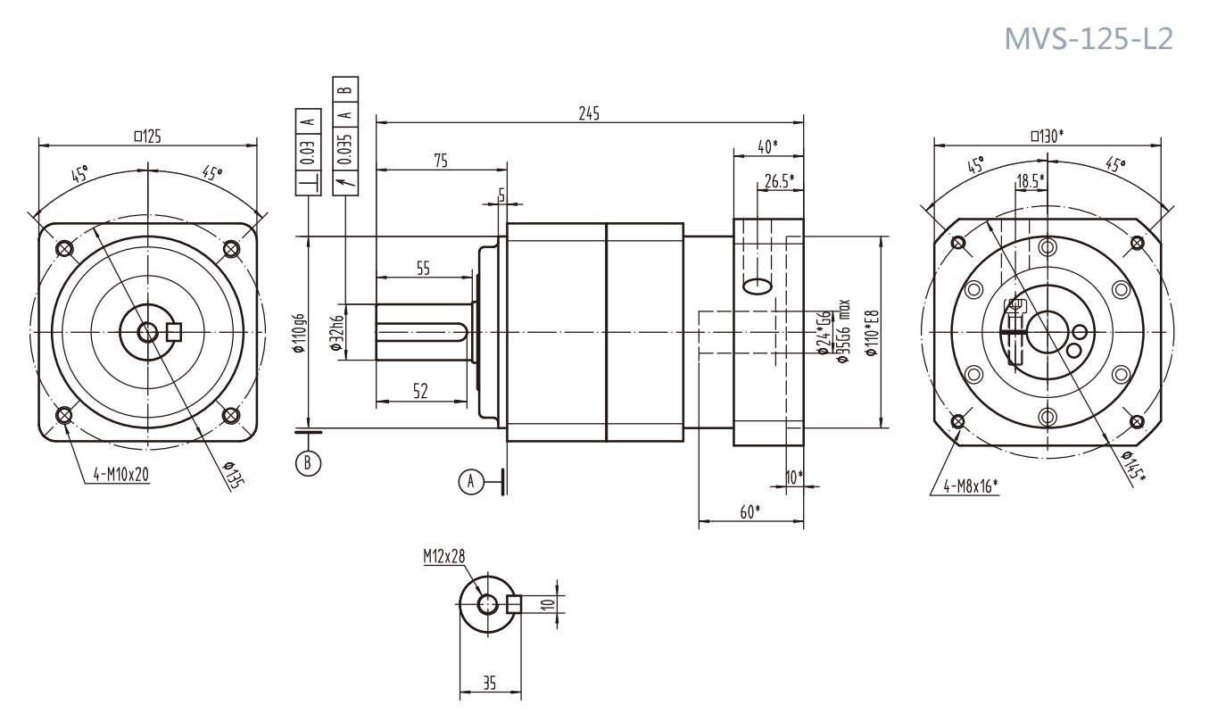 MVS-125-L2系列精密行星减速器型号尺寸与图纸