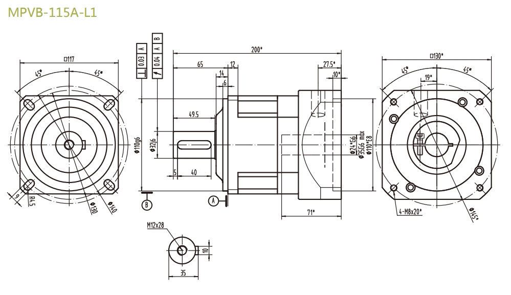 MPVB-115A-L1系列精密行星减速器型号尺寸与图纸