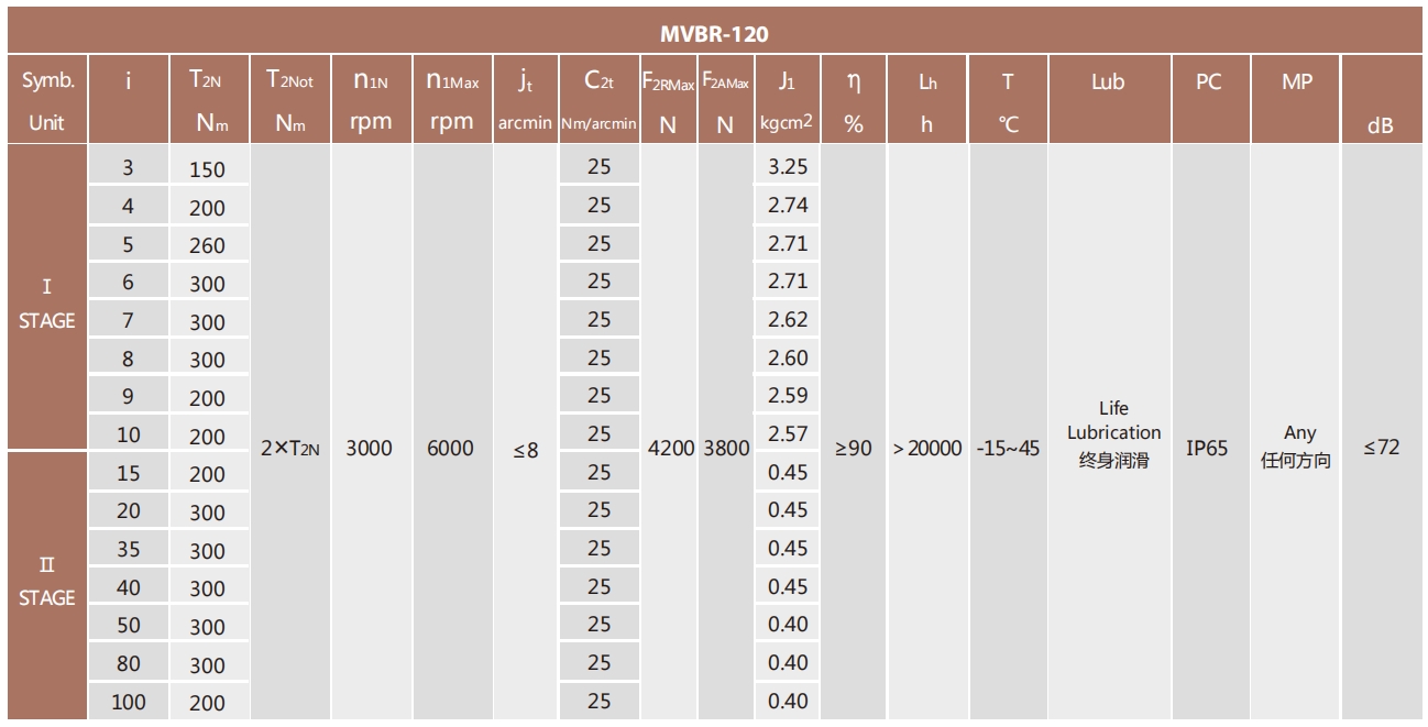 MVBR-120-L2系列超精密背隙行星减速机系列(P0): MVBR-120-L2系列精密背隙行星减速器系列(P1): MVBR-120-L2系列标准背隙行星减速机系列(P2):