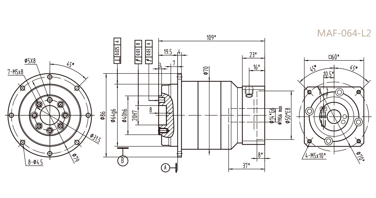 MAF-064-L2系列精密行星减速器型号尺寸与图纸