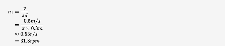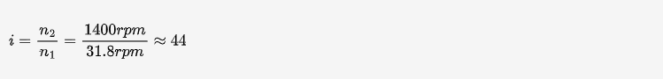 假设所选电机的额定转速为 1400rpm,则减速比为: